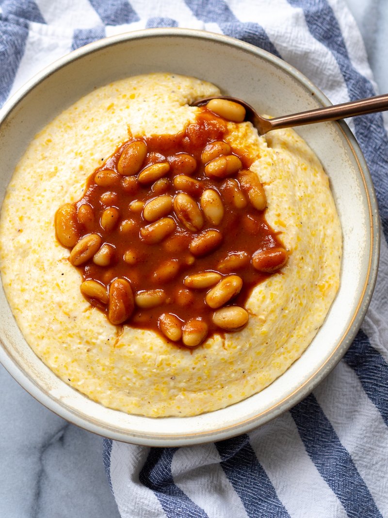 Cheesy hominy grits with sautéed greens can be an excellent vegetarian option. You create a rich and flavorful dish by cooking the grits with vegetable broth instead of water and stirring in sharp cheddar cheese at the end. Topping it with lightly sautéed kale or spinach adds color and nutrients while providing a satisfying crunch.