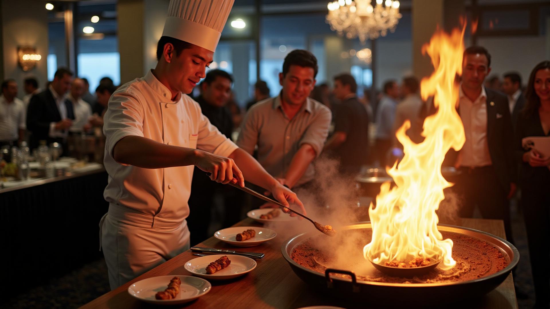 Passive food service can make guests tone down. Expert chefs solve that “dead air” problem by turning the food space into shared theater. That energizes the venue, provides social permission to mingle, and shifts the perceived value from cost to craft.